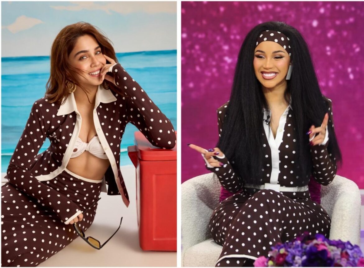 Bollywood’s rising star Sharvari and global rap sensation Cardi B prove Rowen Rose’s chocolate brown polka dot polo dress is a style chameleon!