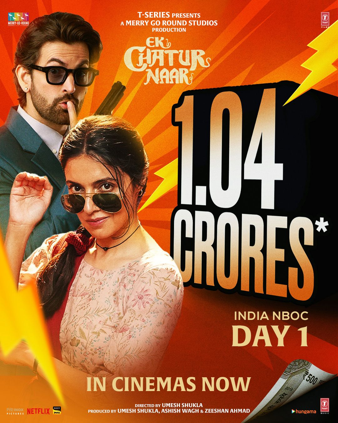 Marking a promising start, Ek Chatur Naar has struck the right chord with audiences on Day 1, collecting ₹1.04 crore India NBOC. The film’s quirky storyline and engaging dark comedy are drawing viewers to cinemas, with positive word of mouth setting the stage for a steady run ahead.