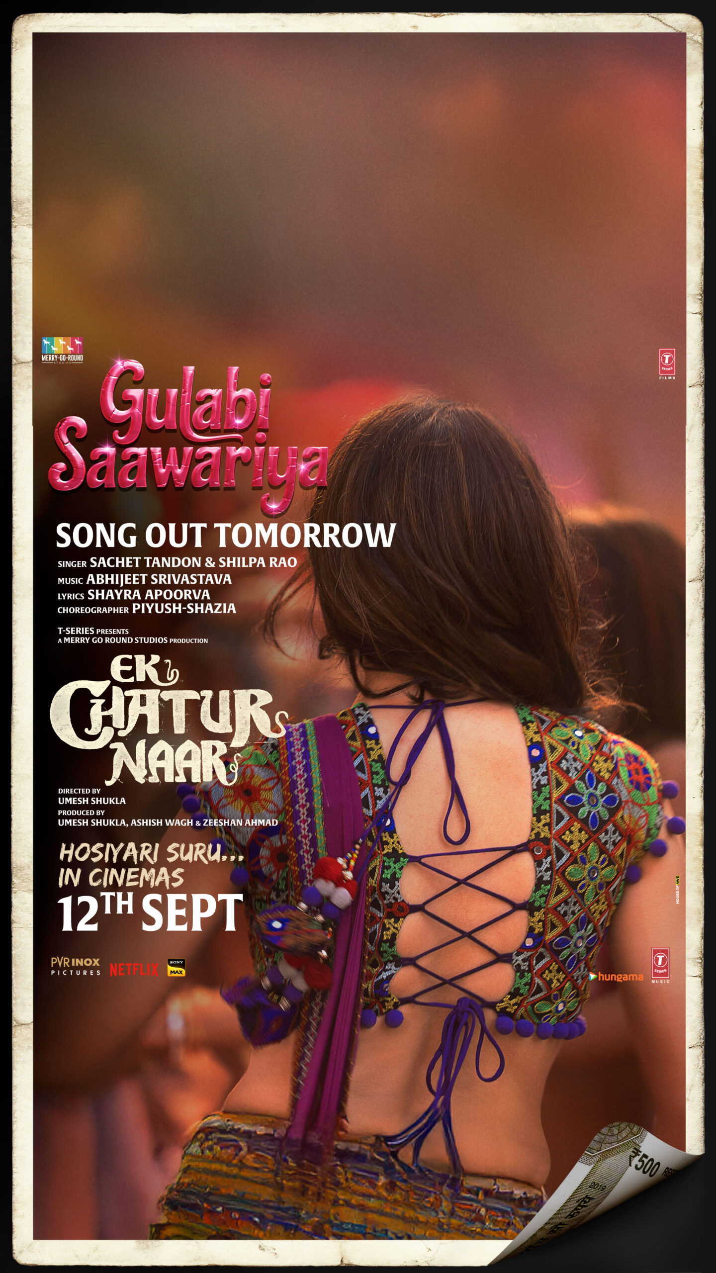 T-Series presents A Merry Go Round Studios Production, directed by Umesh Shukla, produced by Umesh Shukla, Ashish Wagh, and Zeeshan Ahmad. ‘Ek Chatur Naar’ starring Divya Khossla and Neil Nitin Mukesh releases in cinemas on 12th September 2025.