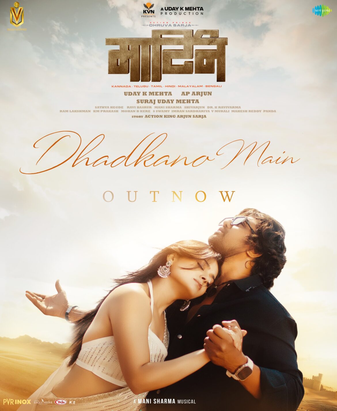 Dhruva Sarja and Vaibhavi Shandilya bring “Dhadkano Main” to life with their electrifying chemistry. Their on-screen partnership is mesmerizing, seamlessly blending to create a captivating and unforgettable performance. Every moment of their interaction adds a magical touch, making the song pure perfection.
